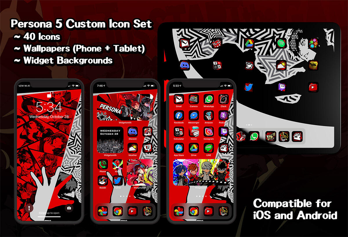 With more customization options in iOS 14, a set of original icons, wallpapers and widgets were made available for purchase (for Android as well), based on Persona 5. Click the image for a link to Gumroad!