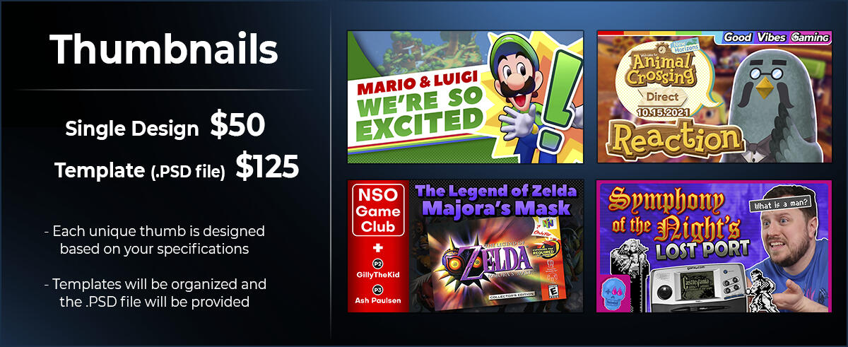 I'm currently the Art Director and Content Contributor for GVG on YouTube. On the side, I am a freelancer, taking on various commissions. I've been committed to graphic design and video production for 13+ years. The vast majority and emphasis of designs circle around video game culture. Since entering GVG, relationships with other artists, content creators, and the overall breadth of design work has been widening.I hope you enjoy the work put into my creative processes~